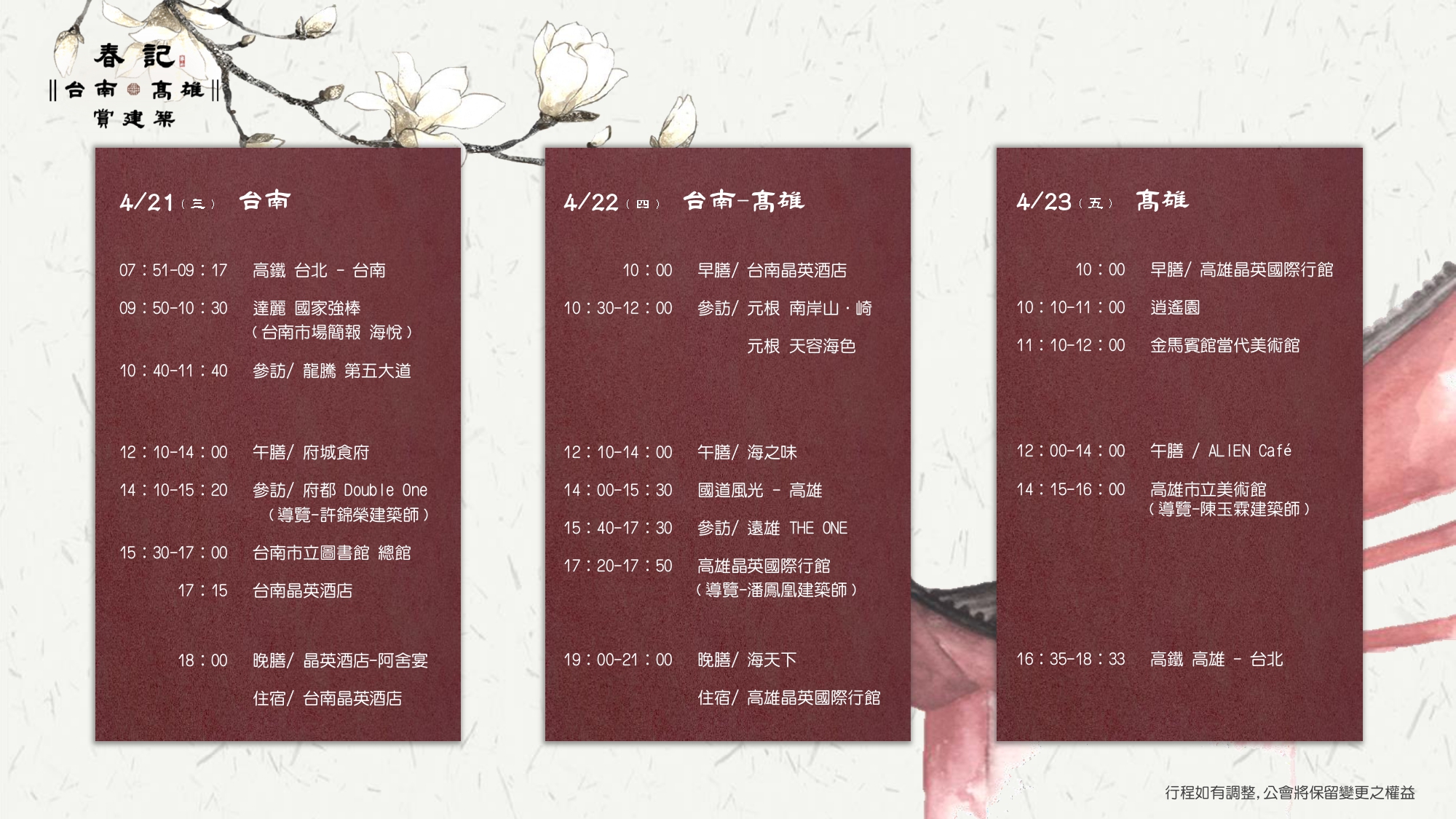 ﹙已額滿,開放候補名額﹚4/21-23 【春記∥台南-高雄∥賞建築】活動開跑嘍~